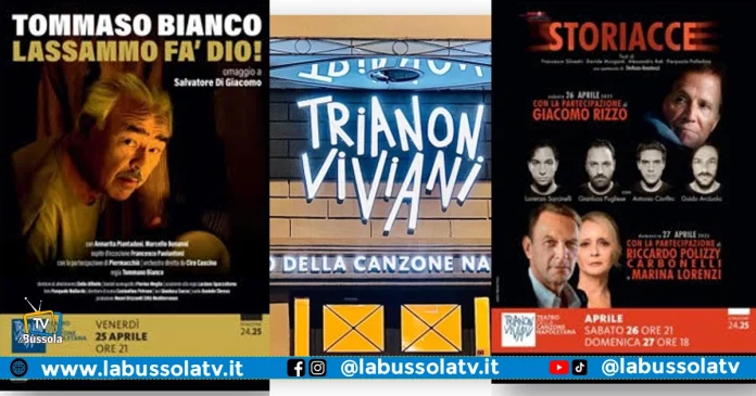 Venerdì 25 aprile, alle 21, va in scena il prossimo spettacolo del cartellone del Trianon Viviani: “Lassammo fa’ Dio!”, l’omaggio speciale e personale di Tommaso Bianco a Salvatore Di Giacomo. Sul palco, con l’attore partenopeo, Annarita Piantadosi e Marcello Bonanni. Ospite d’eccezione Francesco Paolantoni.