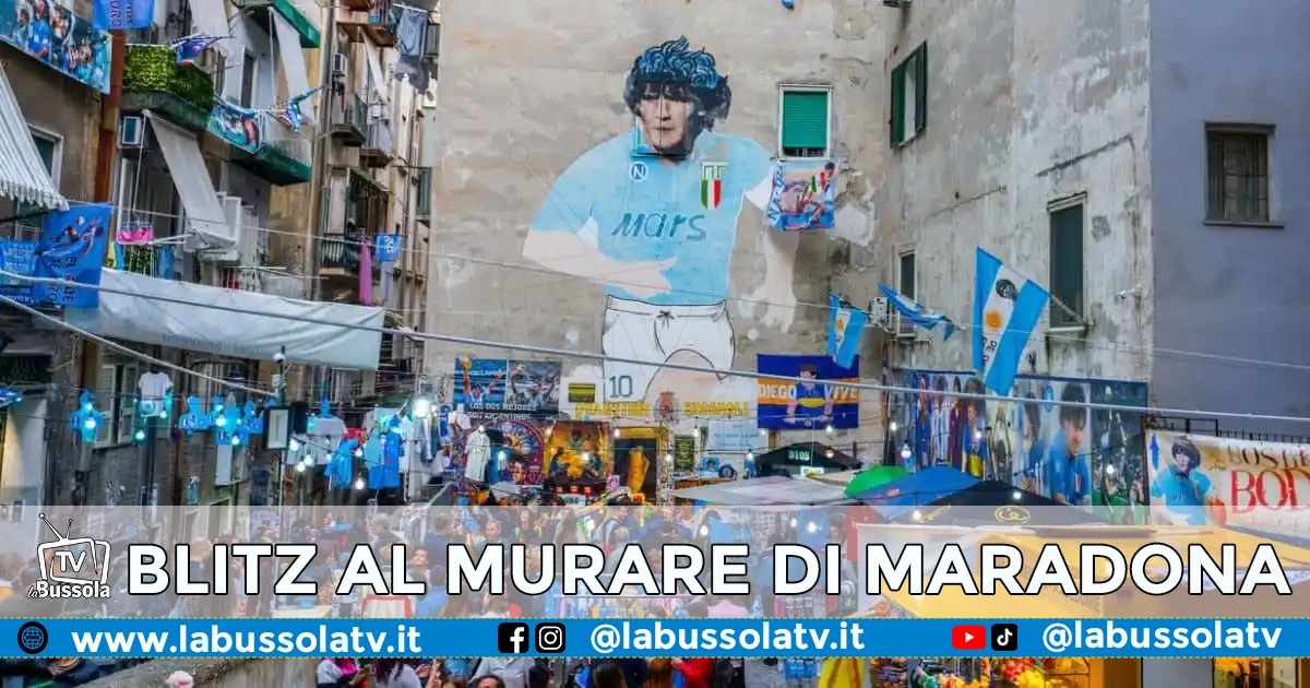 QUARTIERI SPAGNOLI – La Polizia Municipale di Napoli ha sequestrato tutto il materiale presente nella zona dove si trova il murale di Maradona, ai Quartieri Spagnoli, meta ogni giorno di migliaia di visitatori.