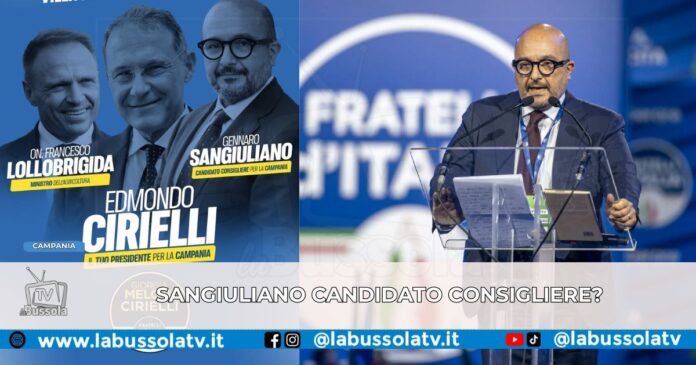 Sui suoi profili social compare una locandina che invita i cittadini a partecipare domani (mercoledì 22 ottobre, alle 18, a villa Feanda, location per eventi tra Nola e Palma Campania) a una iniziativa elettorale con il ministro Francesco Lollobrigida, il candidato governatore Edmondo Cirielli e il giornalista Gennaro Sangiuliano, indicato come “candidato consigliere per la Campania”.