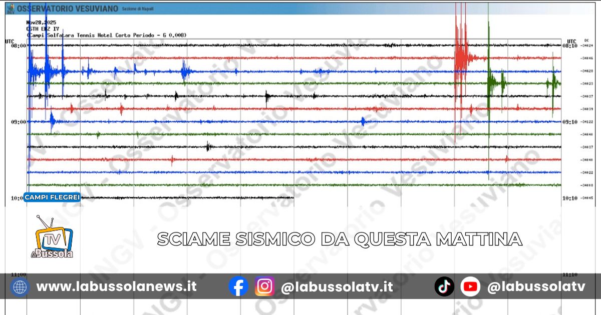 Secondo quanto comunicato dall’Osservatorio Vesuviano, a partire dalle 7:28 di questa mattina l’attività si è intensificata dando origine a un vero e proprio sciame sismico: sette scosse ravvicinate, la più significativa delle quali ha raggiunto una magnitudo di 2.2 ed è stata percepita alle 7:39.