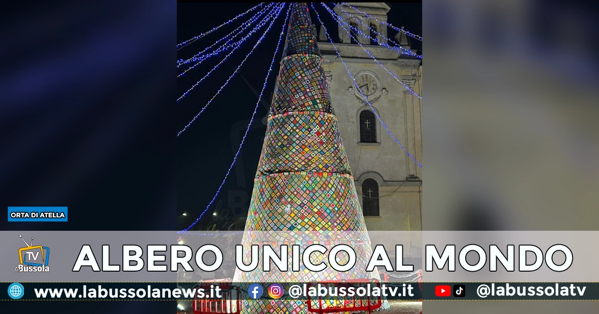 È un’opera unica al mondo quella inaugurata ad Orta di Atella (Caserta): un albero di Natale alto 12 metri, interamente realizzato all’uncinetto con 12mila centrini.