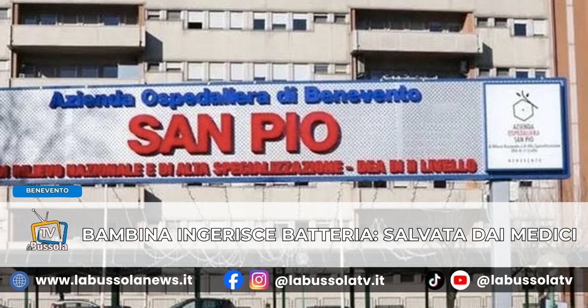 Una bambina che aveva ingerito una batteria a disco è stata salvata dai medici dell’Aorn San Pio di Benevento.