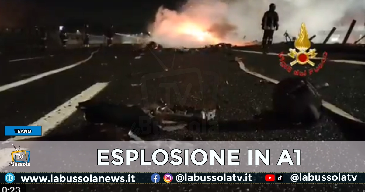 Questa sera, poco prima delle ore 17 sull’Autostrada A1 Milano-Napoli, nel tratto compreso tra Caianello e Capua vicino a Teano (Caserta), una cisterna carica di GPL è esplosa in seguito a un tamponamento tra mezzi pesanti all’altezza del chilometro ~709 in direzione Napoli.