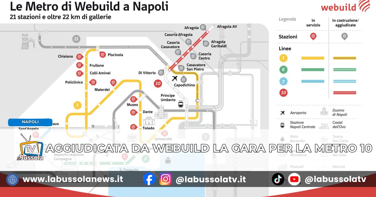 Aggiudicata la gara per la metro Linea 10, progetto da 1,2 miliardi di Comune (870 milioni) e Regione (330 milioni) con Eav soggetto attuatore. Come riporta La Repubblica Napoli, il bando europeo pubblicato a fine agosto dopo il flop del 2024 è stato assegnato a Webuild che guiderà il consorzio con Eteria, Costruire, Icm e Metropolitana di Napoli per il lotto 1 da 660 milioni dedicato alle opere civili. Le opere tecnologiche e i treni rientrano nel lotto 2 aggiudicato da Caf con Leonardo, Mermec, A e T, e Ventura.