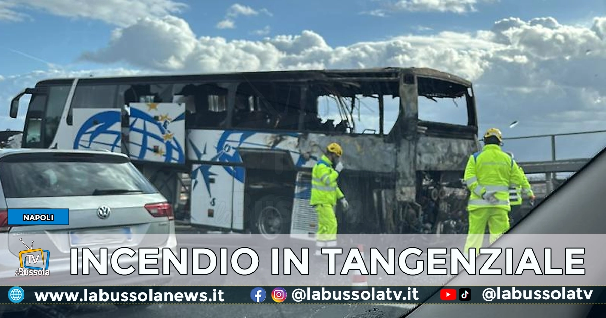NAPOLI – Questa mattina un bus turistico si è quasi totalmente bruciato sulla Tangenziale di Napoli poco prima dell’uscita di Capodimonte, in direzione Corso Malta.