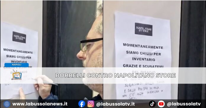 Napoli – Nuova “incursione” social del deputato di Alleanza Verdi-Sinistra Francesco Emilio Borrelli davanti al Napolitano Store, il noto punto vendita di Angelo Napolitano finito al centro di un’inchiesta della Guardia di Finanza per presunte irregolarità fiscali. Il parlamentare si è presentato davanti al locale chiuso nel centro di Napoli, trasmettendo in diretta sui social e contestando pubblicamente il cartello affisso all’ingresso.