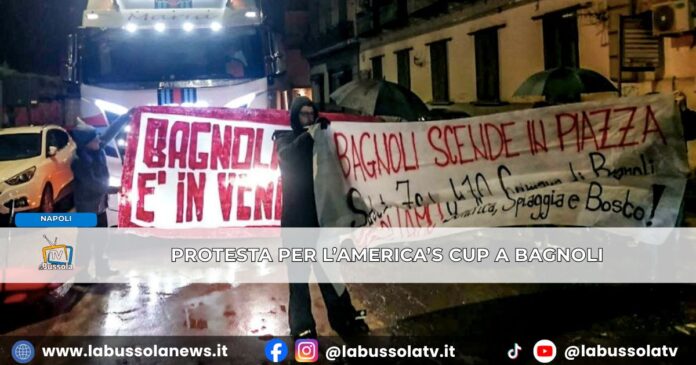 Alcuni attivisti del comitato ‘Mare Libero’ hanno bloccato per alcuni minuti il passaggio dei camion impegnati nel trasporto di materiale per i cantieri a Bagnoli dell’America’s Cup.