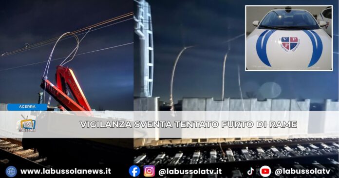 Acerra (NA), 29 gennaio 2026 – Tentato furto di cavi lungo la linea ferroviaria nella serata di ieri, grazie al tempestivo intervento delle guardie giurate dell’Istituto di Vigilanza Prestige Srl. L’episodio si è verificato intorno alle ore 22:55 presso il cantiere ferroviario Nacav, area RI03, durante un servizio di ronda notturna.