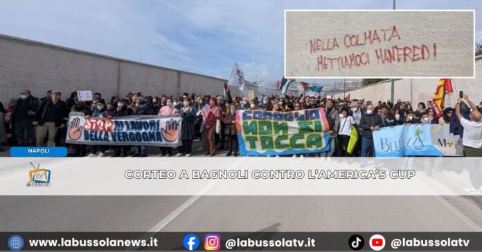 “Nella colmata mettiamoci Manfredi”: è la scritta apparsa sui muri nel quartiere Bagnoli a Napoli in occasione del corteo di ieri mattina contro l’America’s Cup. Un episodio reso noto dal presidente della Commissione Urbanistica del Consiglio comunale, Massimo Pepe, che ha stigmatizzato quanto avvenuto.