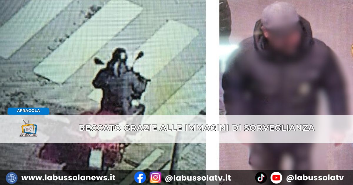 Nel corso degli accertamenti, l’Istituto di Vigilanza Prestige metteva a disposizione della Polizia di Afragola le immagini di videosorveglianza relative all’individuo ritenuto responsabile del furto, materiale che si è rivelato determinante per l’identificazione del soggetto. Il ladro è stato arrestato.