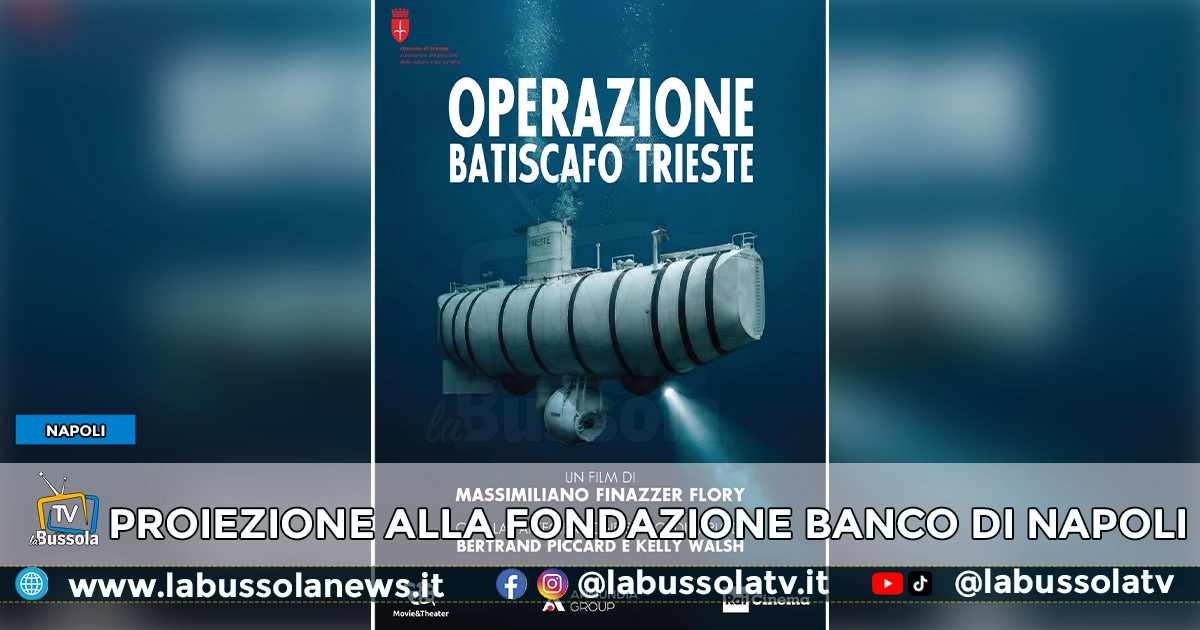 NAPOLI – Dopo la proiezione di Roma, nell’Aula dei Gruppi parlamentari alla Camera dei Deputati, si proietta mercoledì 11 marzo a Napoli, alle 17.30 nella sala della Fondazione Banco di Napoli, il film Operazione Batiscafo Trieste, lungometraggio scritto e diretto da Massimiliano Finazzer Flory, commissionato dal Comune di Trieste e prodotto da Movie&Theatre con RAI Cinema e Armundia.