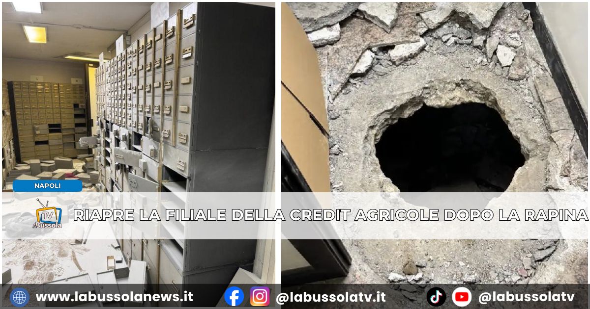 A Napoli torna operativa da oggi, lunedì 20 aprile, la filiale della Crédit Agricole di piazza Medaglie d’Oro, teatro pochi giorni fa di una clamorosa rapina con sequestro di persone. Dopo la chiusura temporanea necessaria per le indagini e gli interventi tecnici, l’istituto riapre al pubblico con un sistema di sicurezza ulteriormente potenziato, che include anche vigilanza notturna.