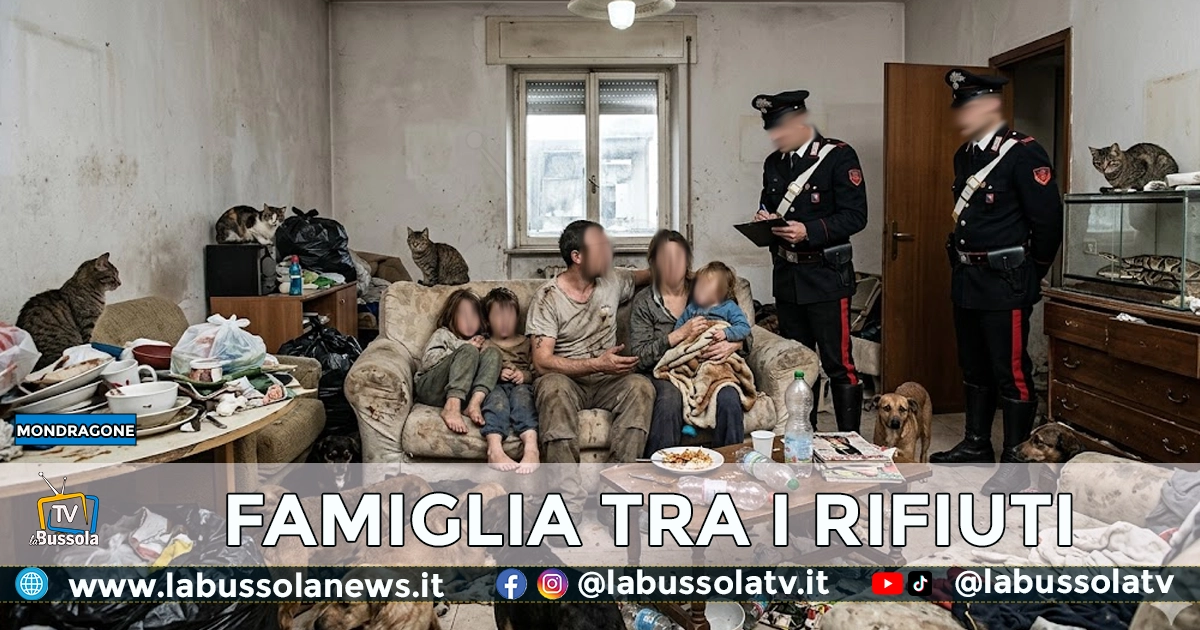MONDRAGONE – Cumuli di rifiuti ovunque, con tre bimbi piccoli e decine di animali, tra cui persino un pitone, costretti a vivere nel degrado, tra i propri escrementi: è lo scenario che si sono trovati davanti i Carabinieri a Mondragone (Caserta), nella località di Pescopagano.