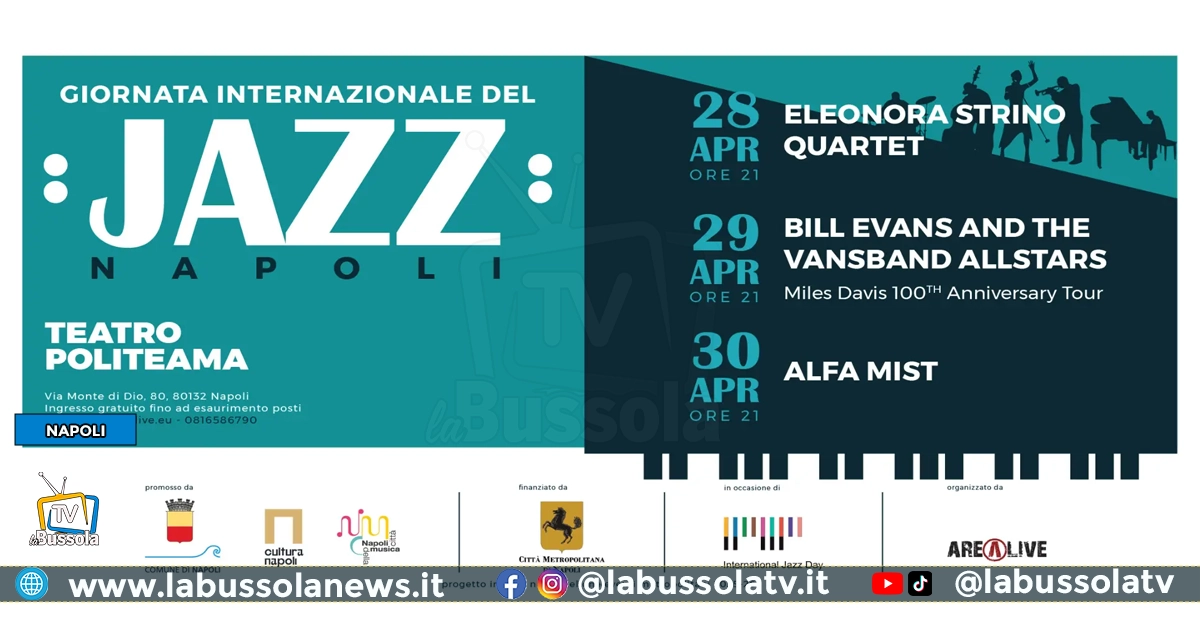 Terza edizione della Giornata Internazionale del Jazz, a Napoli. Tre i concerti in programma dal 28 al 30 aprile, al teatro Politeama, per la manifestazione promossa dal Comune di Napoli nell’ambito del progetto ‘Napoli Città della Musica’, finanziata dalla Città Metropolitana di Napoli e organizzata da Arealive.